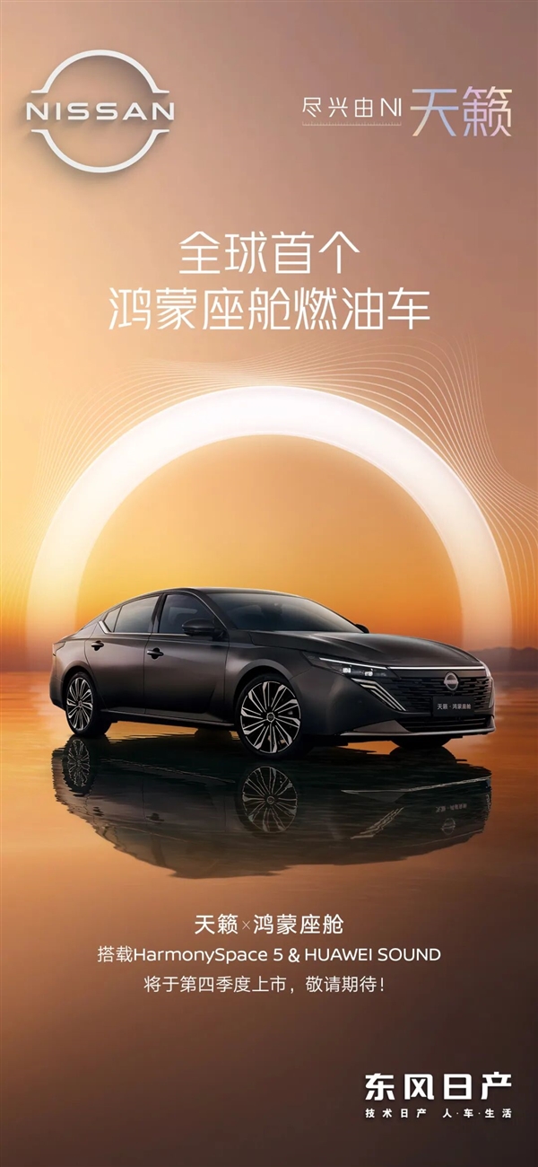 9月24日消息,东风日产最新官宣股天下配资官网,品牌旗下B级轿车天籁成为全球首款搭载鸿蒙座舱5的燃油车。